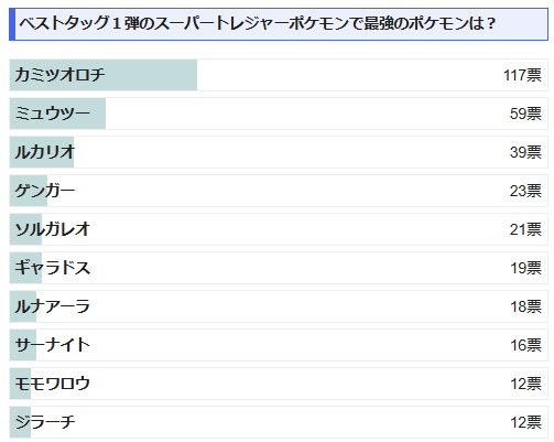 ベストタッグ1弾では、カミツオロチ、ミュウツー、ルカリオが人気になっていますね。